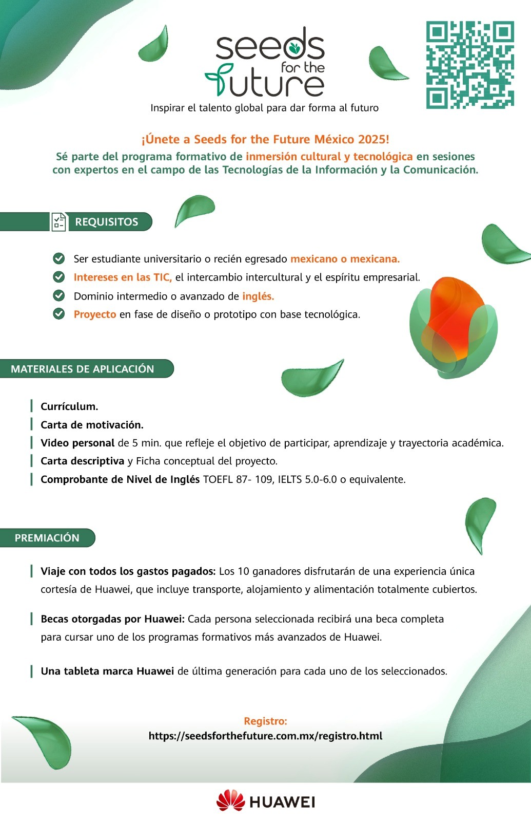Video original, elaborar un video con el título “Mi video para Seeds for the Future México 2025” Esta será su exposición de motivos para participar al concurso. Deberá describir de manera general el objetivo y alcance de su proyecto incluyendo su conocimiento sobre la compañía y las razones para querer participar en el programa formativo de Huawei.