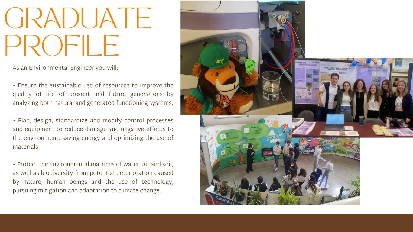 The Anahuac Environmental Engineer seeks to improve the quality of life of people. It proposes strategies and makes decisions that promote practices that favor well-being and contribute to the sustained and sustainable development of the country, participating in the construction of a viable future.