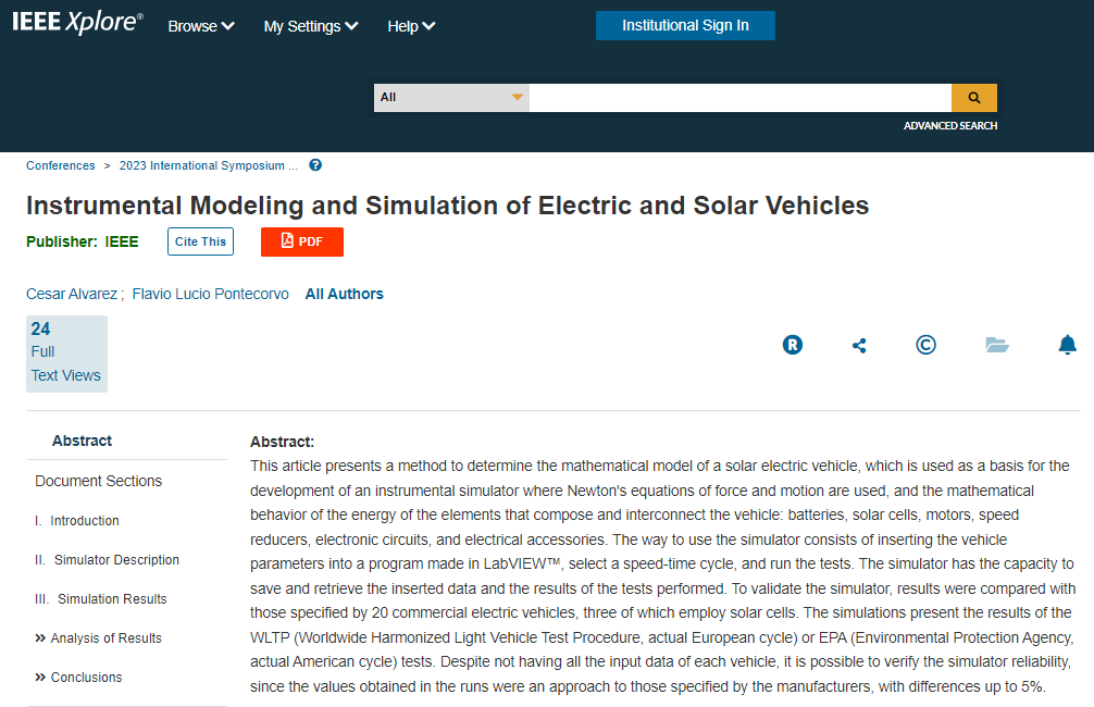 ARTÍCULO CIENTÍFICO - Instrumental Modeling and Simulation of Electric and Solar Vehicles