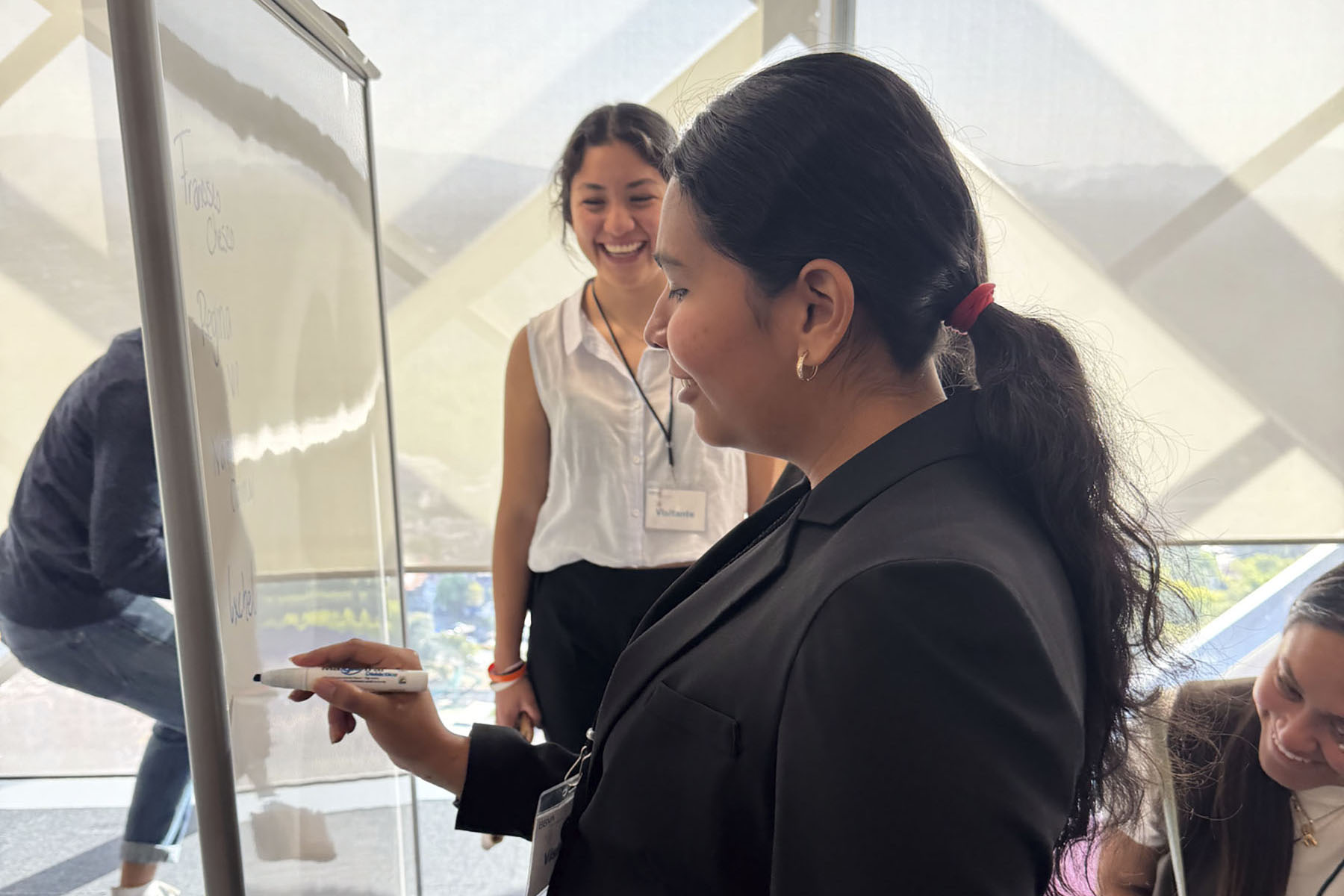 La jornada continuó en la Torre BBVA, una de las sedes financieras más importantes de México. Gracias al apoyo del Mtro. Ernesto Ramos López, miembro del Consejo Consultivo Académico, se facilitó esta visita en la que los estudiantes participaron en una presentación institucional sobre la visión global del Grupo BBVA, sus estrategias y su apuesta por la innovación tecnológica. Asimismo, pudieron recorrer áreas de innovación, donde se mostró cómo la banca se transforma para enfrentar los desafíos digitales. Como parte de la dinámica, se realizó un sorteo entre los asistentes, resultando ganador Tonatiuh Rueda, quien recibió un libro.